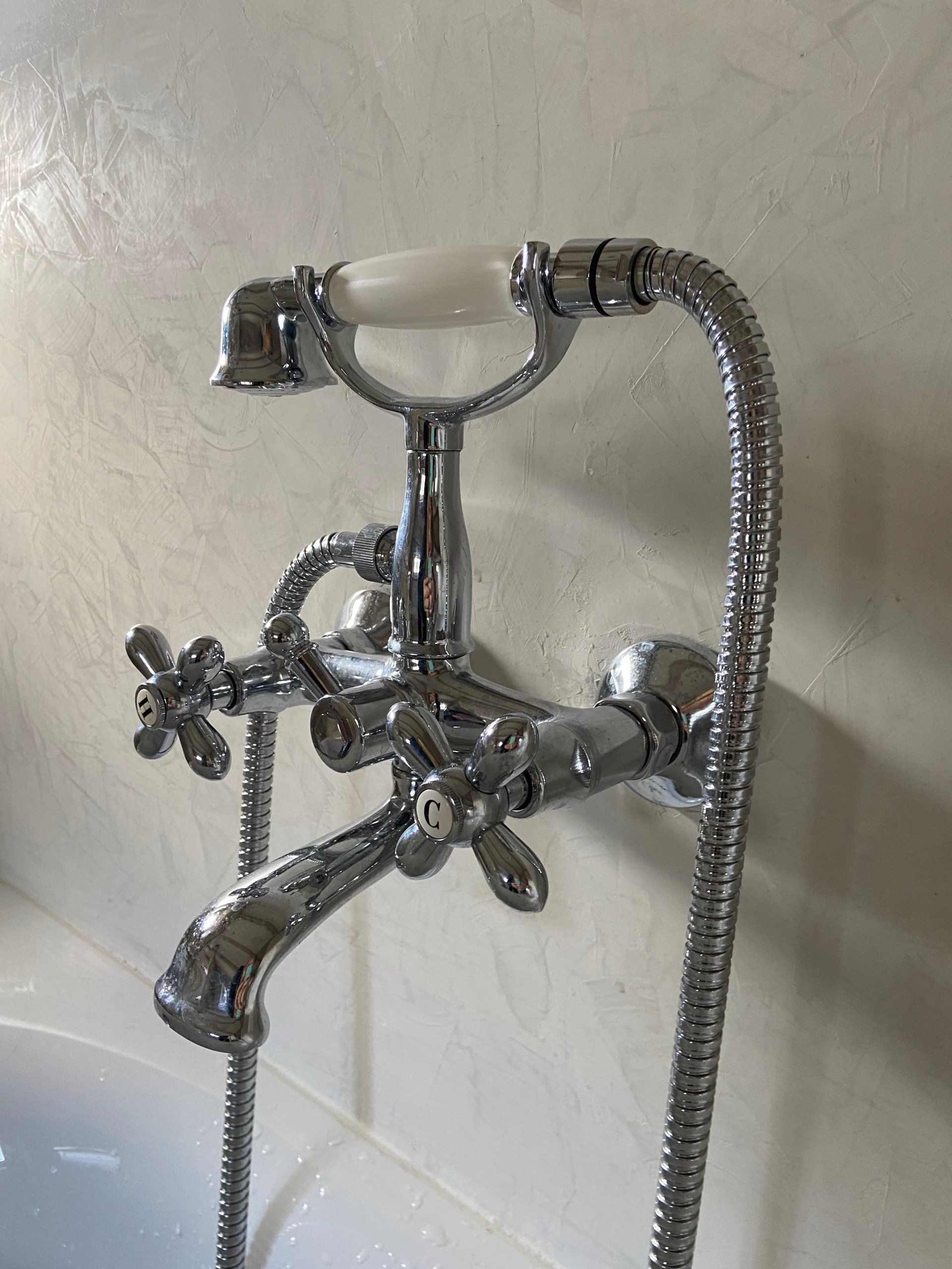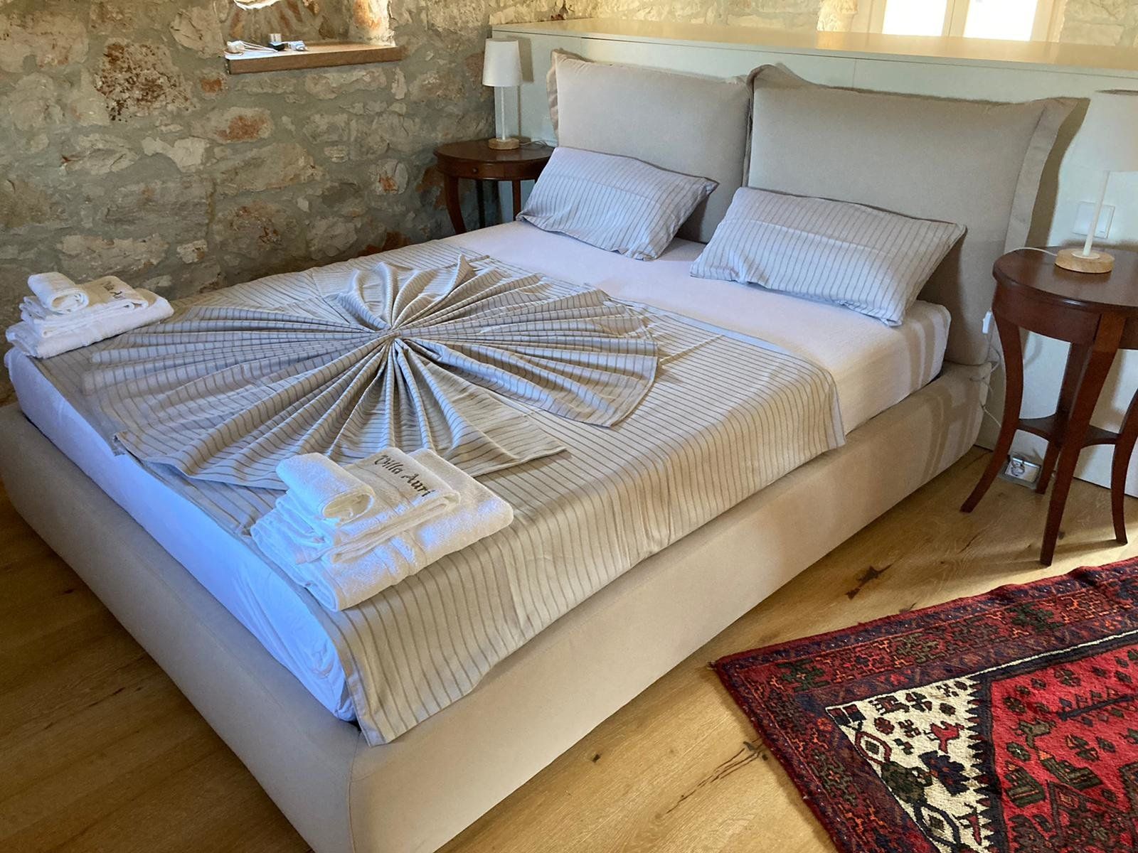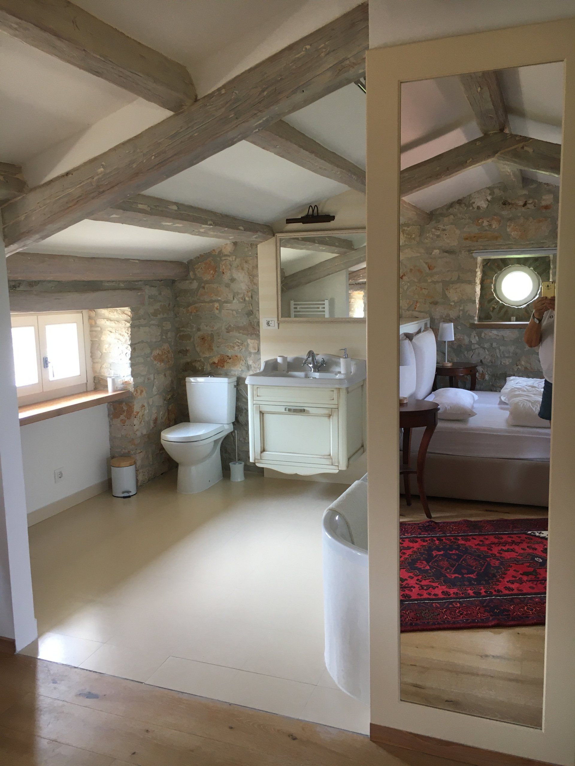 Großzügiges Schlafzimmer mit Doppelbett und Meerblick sowie Bad en Suite mit Badewanne