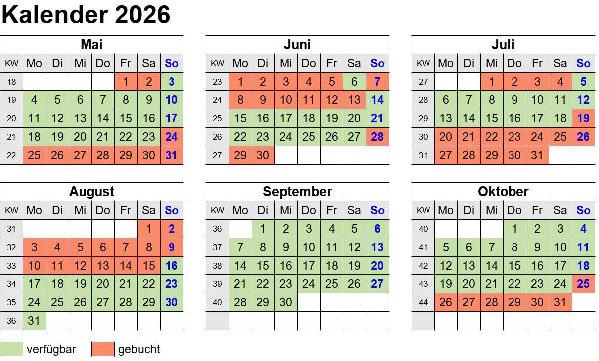 Der An- / Abreisetag ist für Sonntag vorgesehen